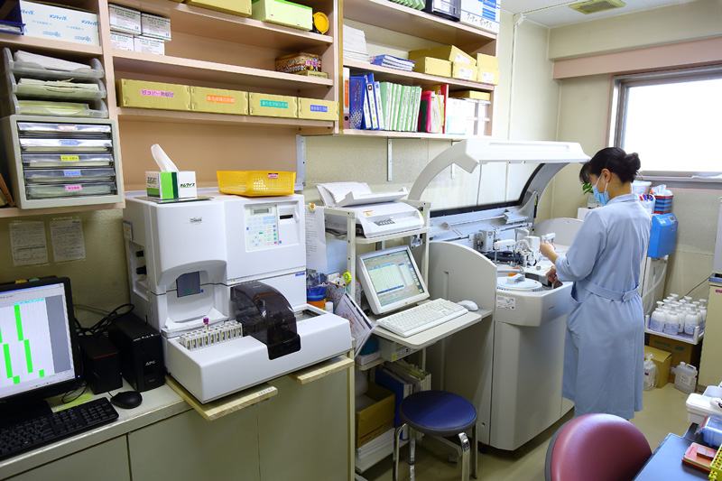 自動分析装置(日立7180)をはじめ血液・尿など最新検査機器を導入し迅速で正確な検査結果の提供と検査の質の向上に他部署と連携を密にし取り組んでいます。